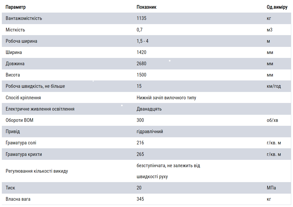 Невеликі розміри і маса яка не перевищує 1,5 тонни, дозволяють машині працювати з невеликими, поворотними тракторами і використовувати його навіть при посипання тротуарів.